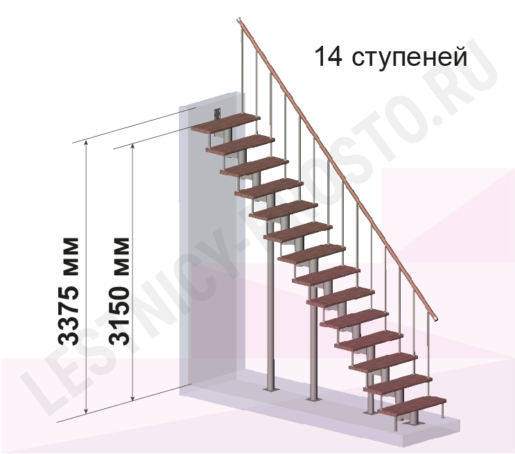 Модульная лестница PROSTO Module прямая/ h337.5 см