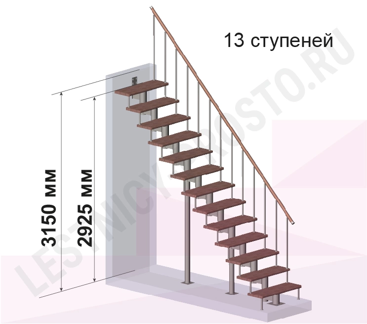 Модульная лестница PROSTO Module прямая/ h292.5 см