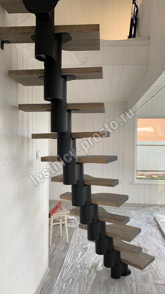Лестница Prosto Urban Black гусиный шаг 700 мм, h216-312 см (12 ступеней), дуб