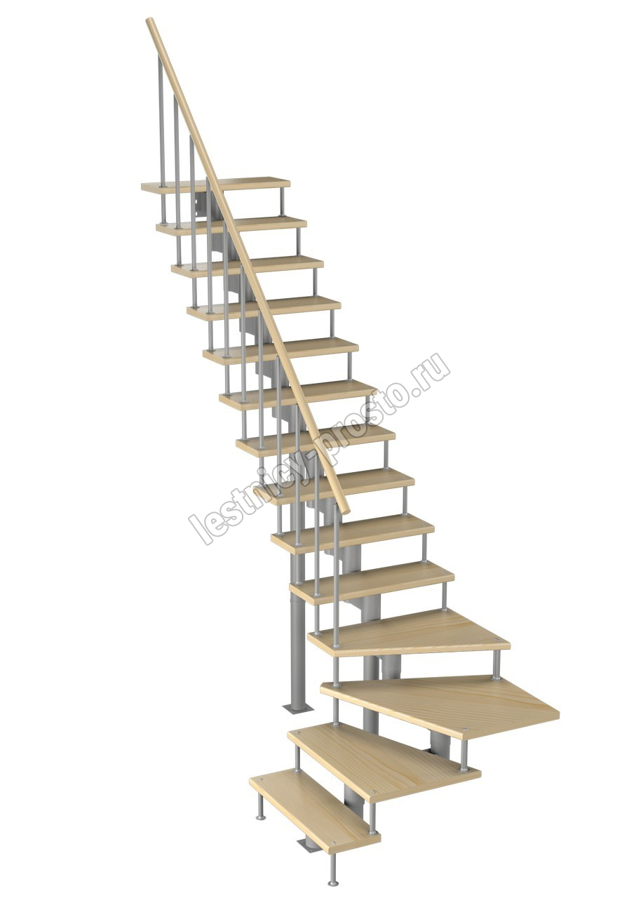 Модульная лестница Фаворит 180 2520-2660, Серый, Сосна, Крашеная, Без Ступений