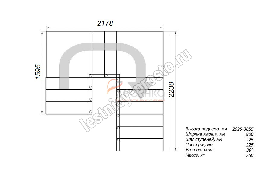 Модульная лестница Комфорт 225 2925-3055, Белый, Сосна, Крашеная