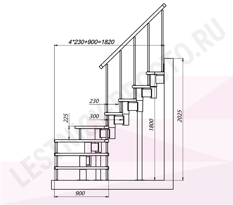 Высота лестницы 1800 - 2025 (8 ступеней) мм