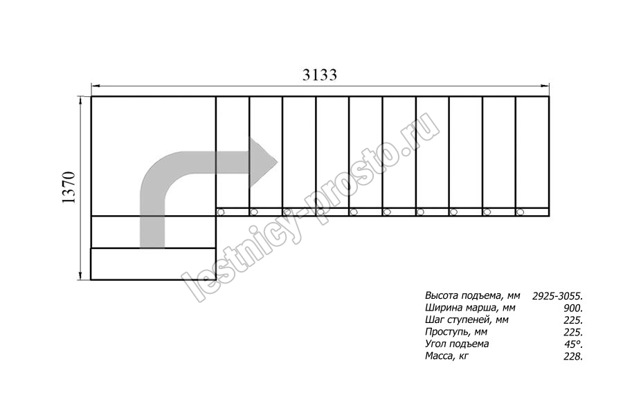 Модульная лестница Статус 225 2925-3055, Черный, Сосна, Крашеная, Без Ступений