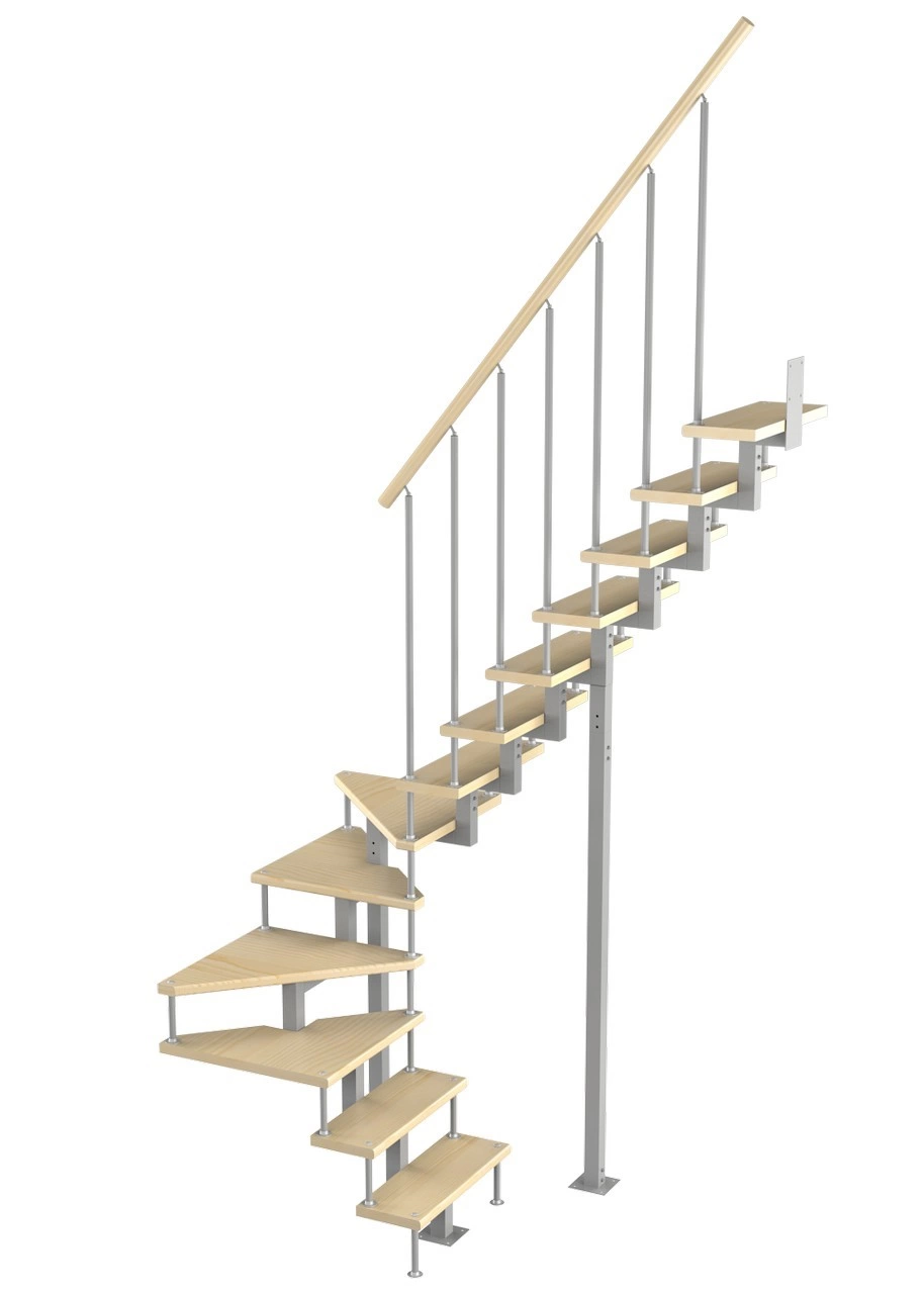 Модульная малогабаритная лестница Эксклюзив 2925-3150, Серый, Лиственница, Нержавеющая сталь