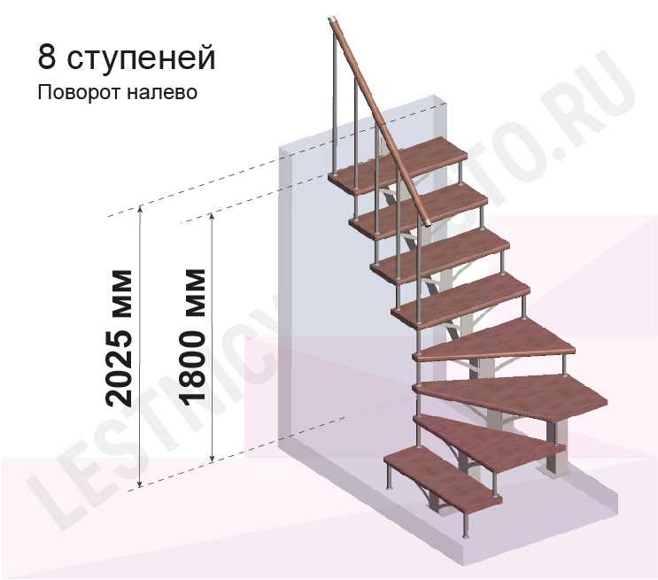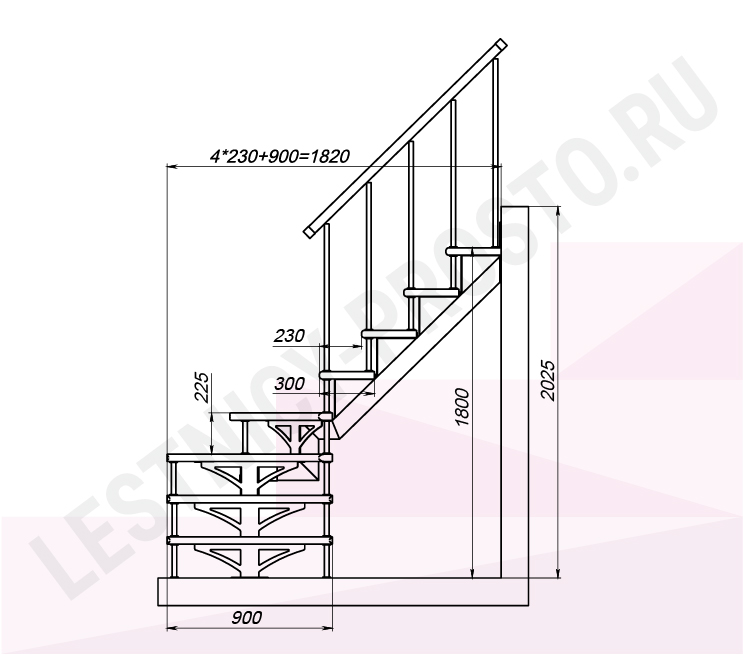 Лестница PROSTO MONO Г-образная h202.5 см, ступени хвоя