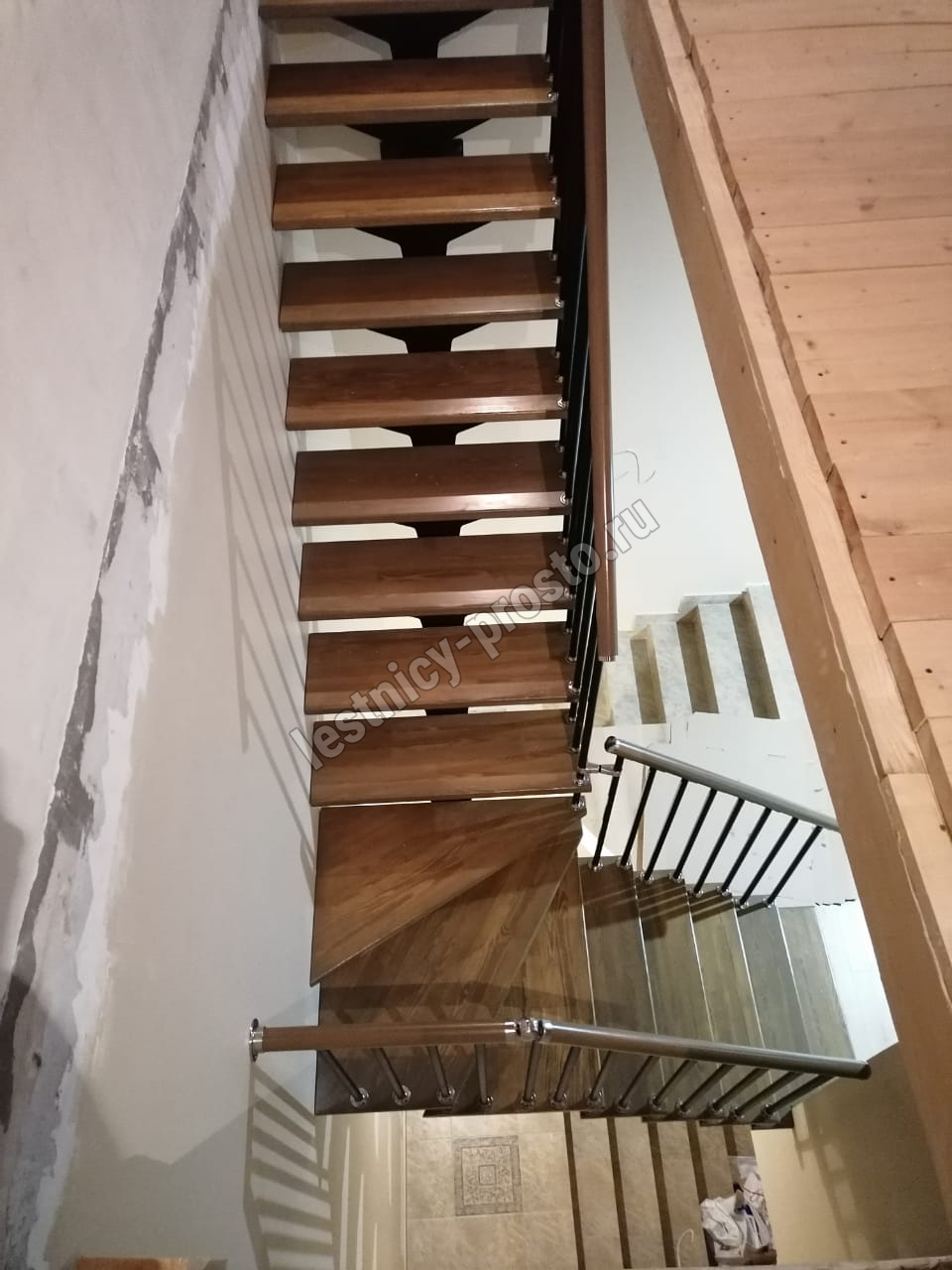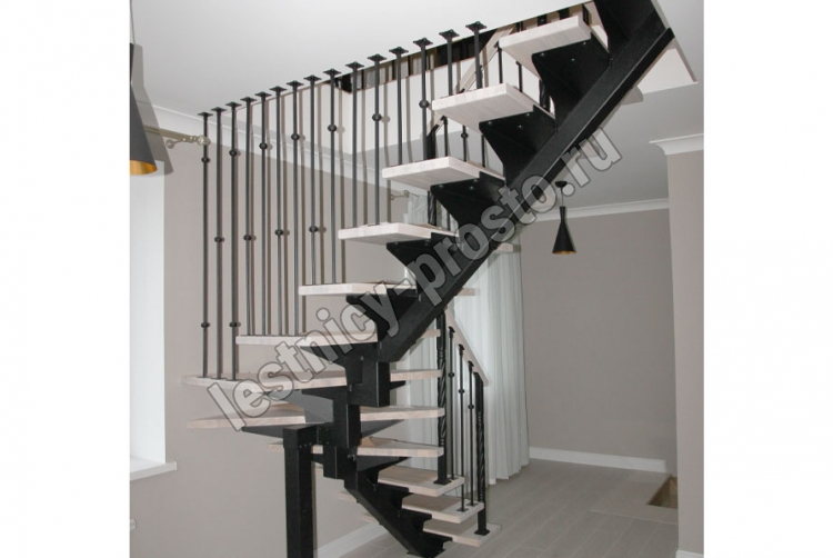 | Лестница PROSTO MONO Г-образная h225 см, ступени лиственница |