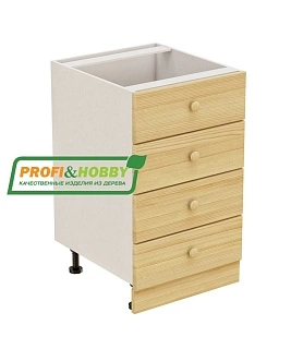 Тумба 4 ящика 400х530х720 + фасад сосна бесцветный акриловый лак