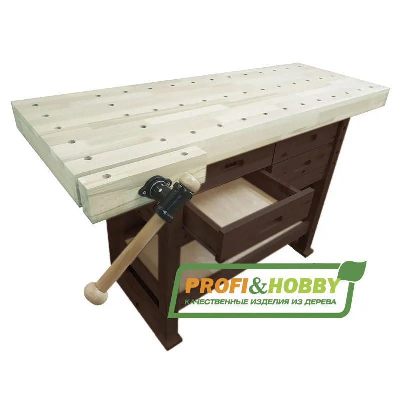 Комплектация: 1 тиски, 2 пенала в столешнице, 2 выдвижных ящика, полка для инструментов.