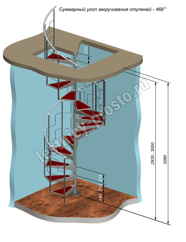 Высота подъема от пола нижнего этажа до пола верхнего: 3210 мм