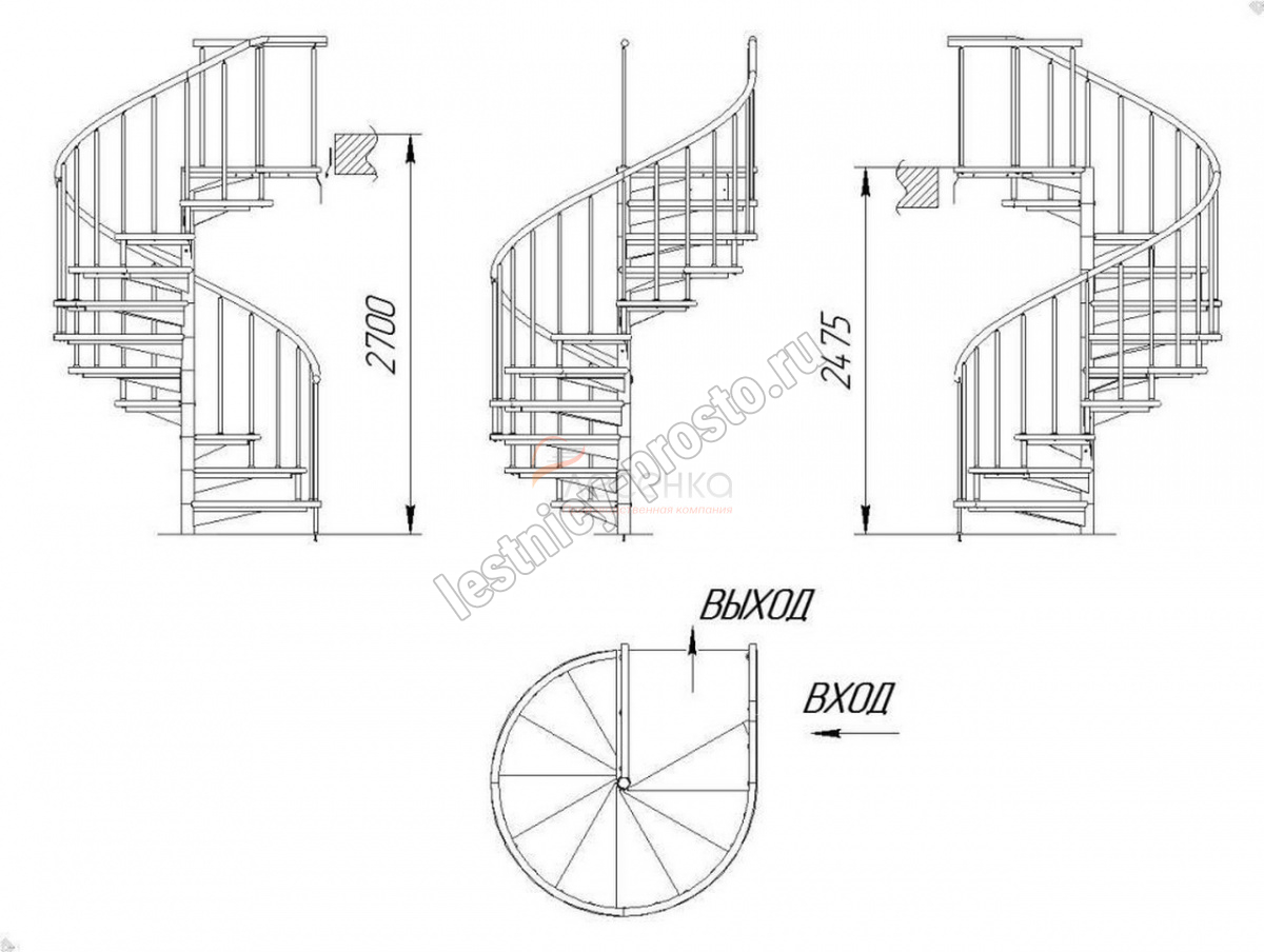Винтовая лестница ЛЕС-1,8 высота 2475-2700, Черный, Лиственница