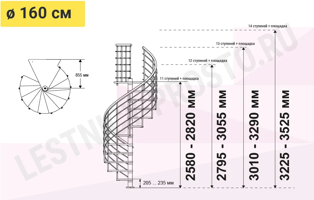 | Винтовая лестница Montreal STYLE чёрная, d160 см, h258-282 см |
