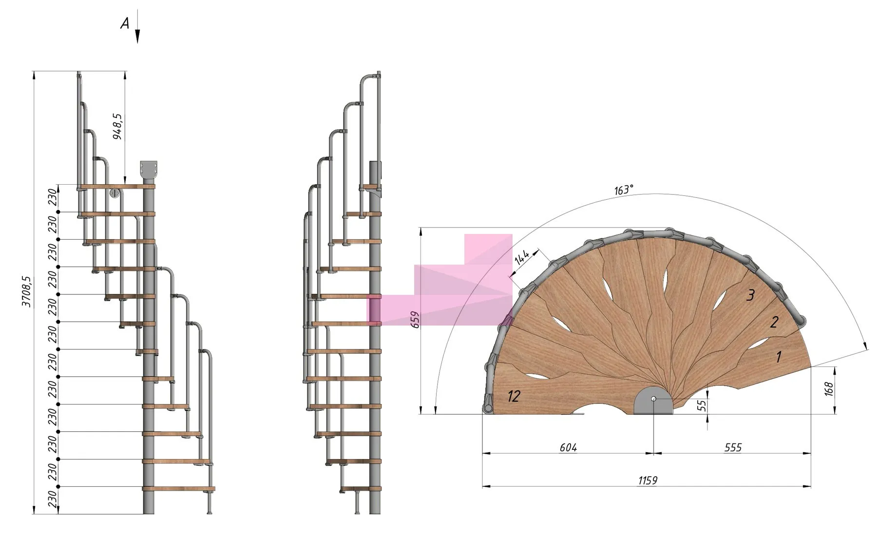 | Винтовая лестница PROSTO MINI 70×140 см, h322-345 см |