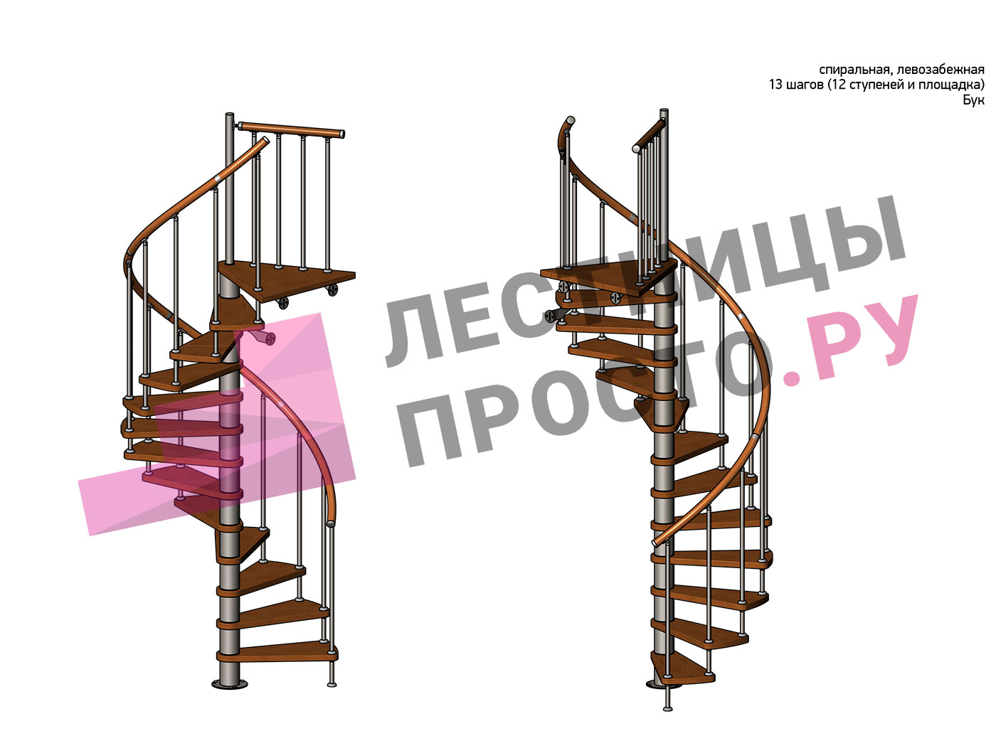 Винтовая лестница Prosto Spiral Black D140см, h282.2-326,3 см, бук