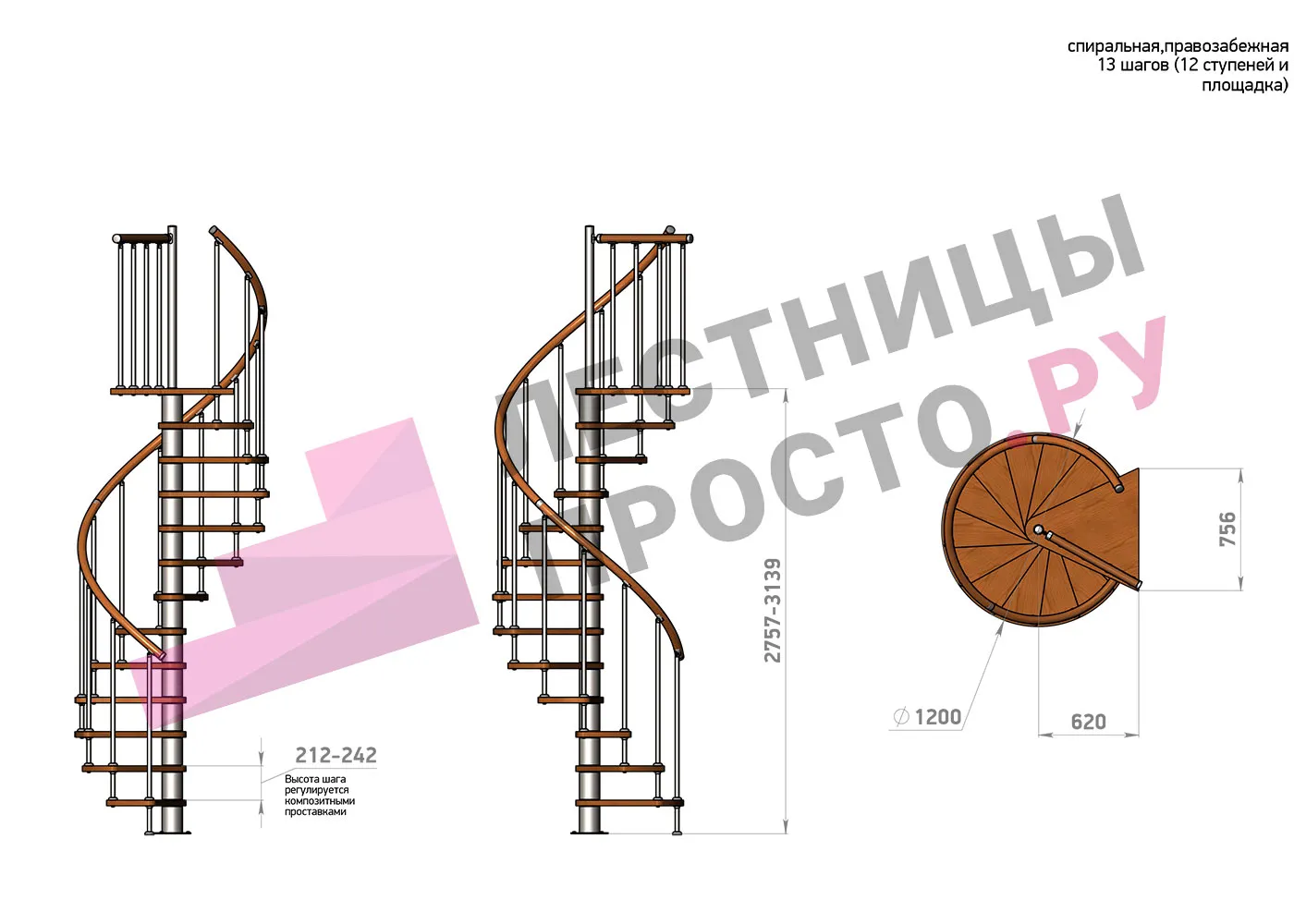 | Винтовая лестница Prosto Spiral Black D120см, h275.7-313.9 см |