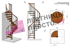 Ширина ступени между центральной колонной и поручнем ≈ 580 мм