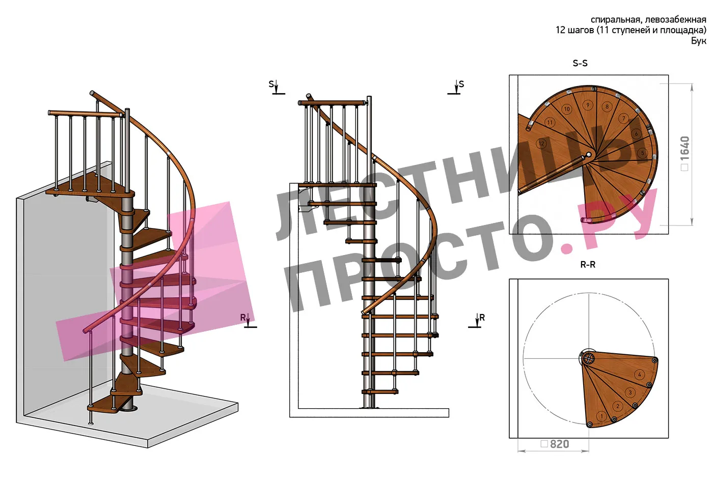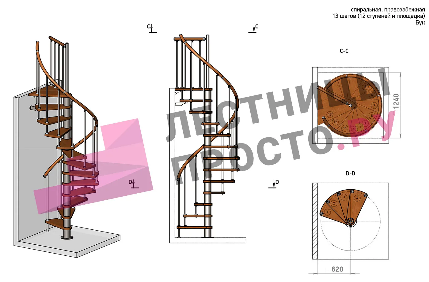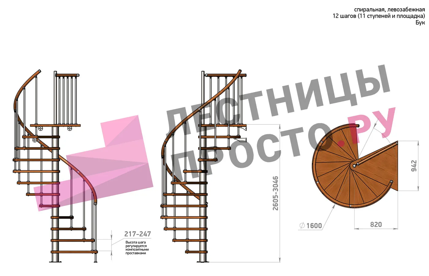 | Винтовая лестница Prosto Spiral White D160см, h282.2-326,3 см, бук |