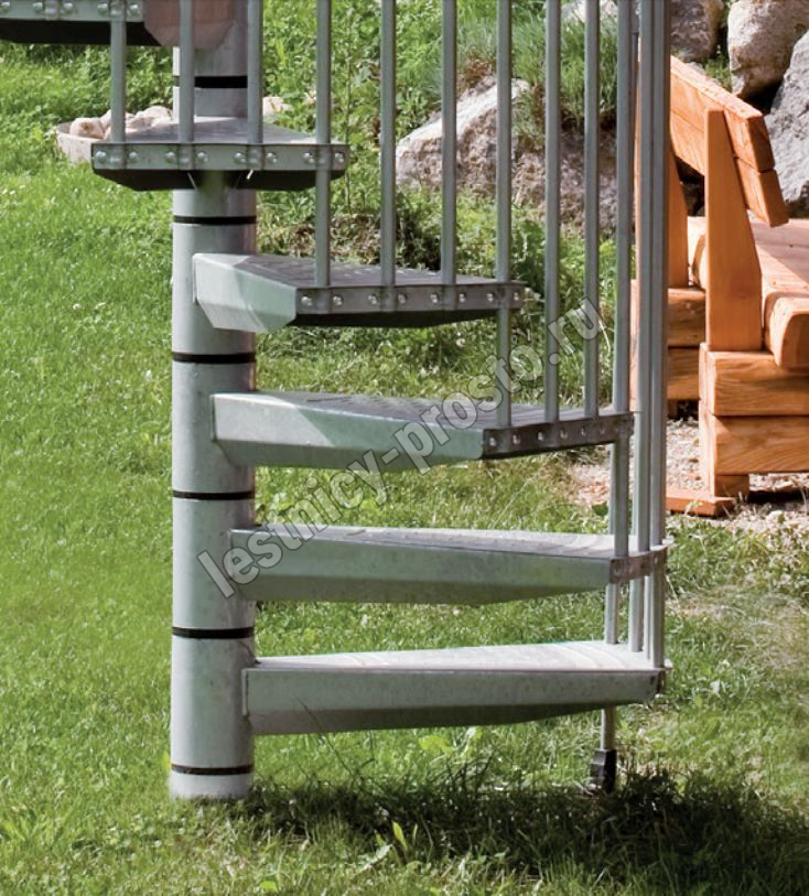 Благодаря возможности регулировать высоту шага с помощью пластиковых вставок (входят в базовый комплект), высоту лестницы можно варьировать в пределах от 2730 до 3000 мм. Ступени лестницы изготовлены со специальным, антискользящим рельефом.