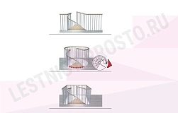 Перила состоят из стальных балясин, окрашенных в черный (RAL 9017), белый (RAL 9010) или серый (RAL 9006). Концы черные для черной лестницы и серые для серой и белой лестниц.