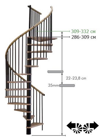 Лестница представлена в двух вариантах: с поворотом направо и с поворотом налево.