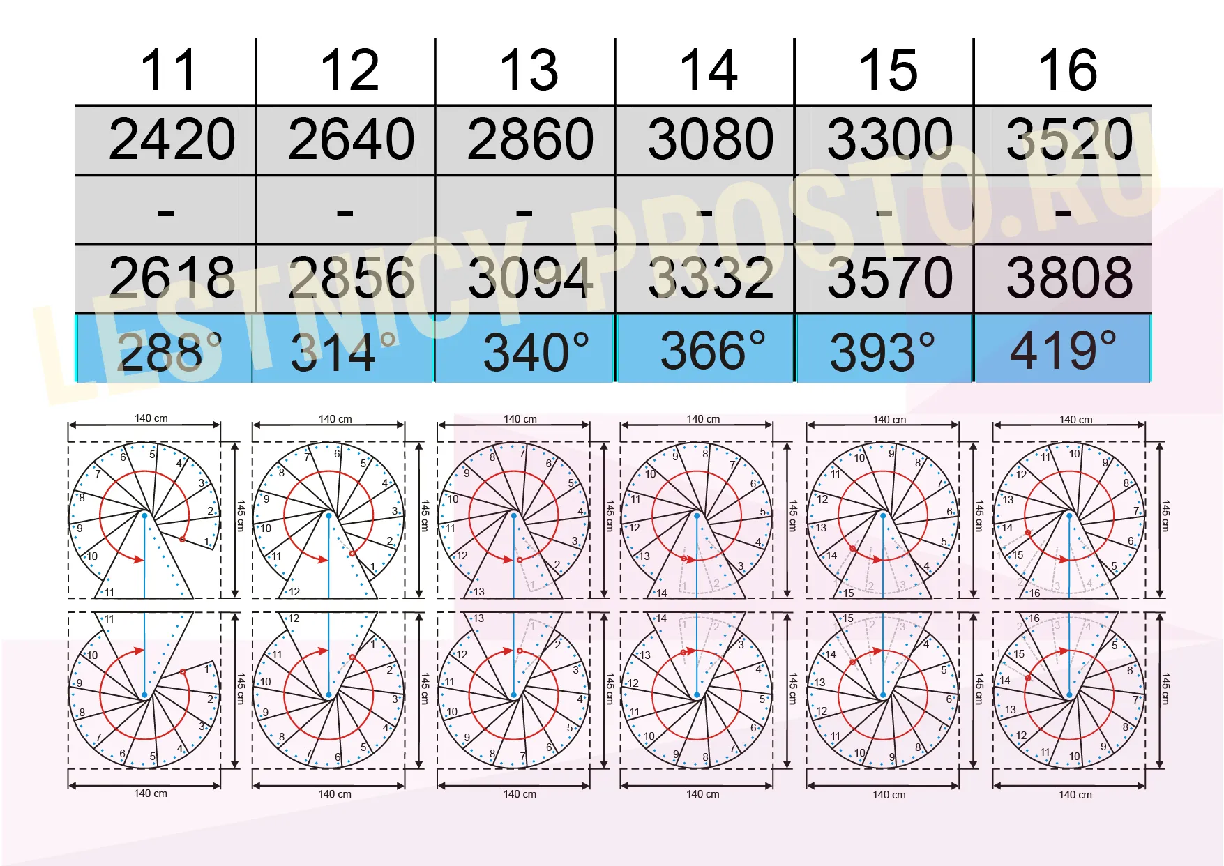 Варианты сборки SPIRAL WOOD 140 в зависимости от количества ступеней