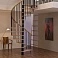 Лестница представлена в двух вариантах: с поворотом направо и с поворотом налево. Благодаря возможности регулировать высоту шага с помощью пластиковых вставок (входят в базовый комплект), высоту лестницы можно варьировать в пределах от 2860 до 3090 мм. Кроме того, купив дополнительную секцию для этой лестницы, можно поднять высоту до 3320 мм. Поручень изготовлен из массива бука в тон ступеням. Ступени и поручень покрыты износостойким защитным лаком.