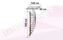 Компактная надёжная лестница. Ступени толщиной 30 мм, изготовлены из массива берёзы по технологии Multiplex, лакированные. Все металлические части оцинкованы, горячим способом и покрыты порошковой краской - черного цвета; Лестница имеет надёжную несущую стальную конструкцию.