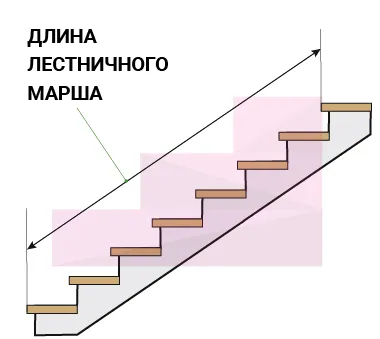 Длина лестничного марша расстояние от передней кромки крайней нижней ступени лестницы до передней кромки крайней верхней ступени. Длину марша измеряют по горизонтали вдоль средней линии марша.
