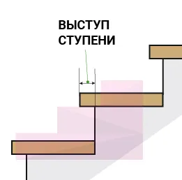 Размер выступа горизонтальное расстояние, на которое передняя кромка ступени нависает над проступью, находящейся под ней. Размер проступи определяет разницу между реальной и расчётной шириной проступи.