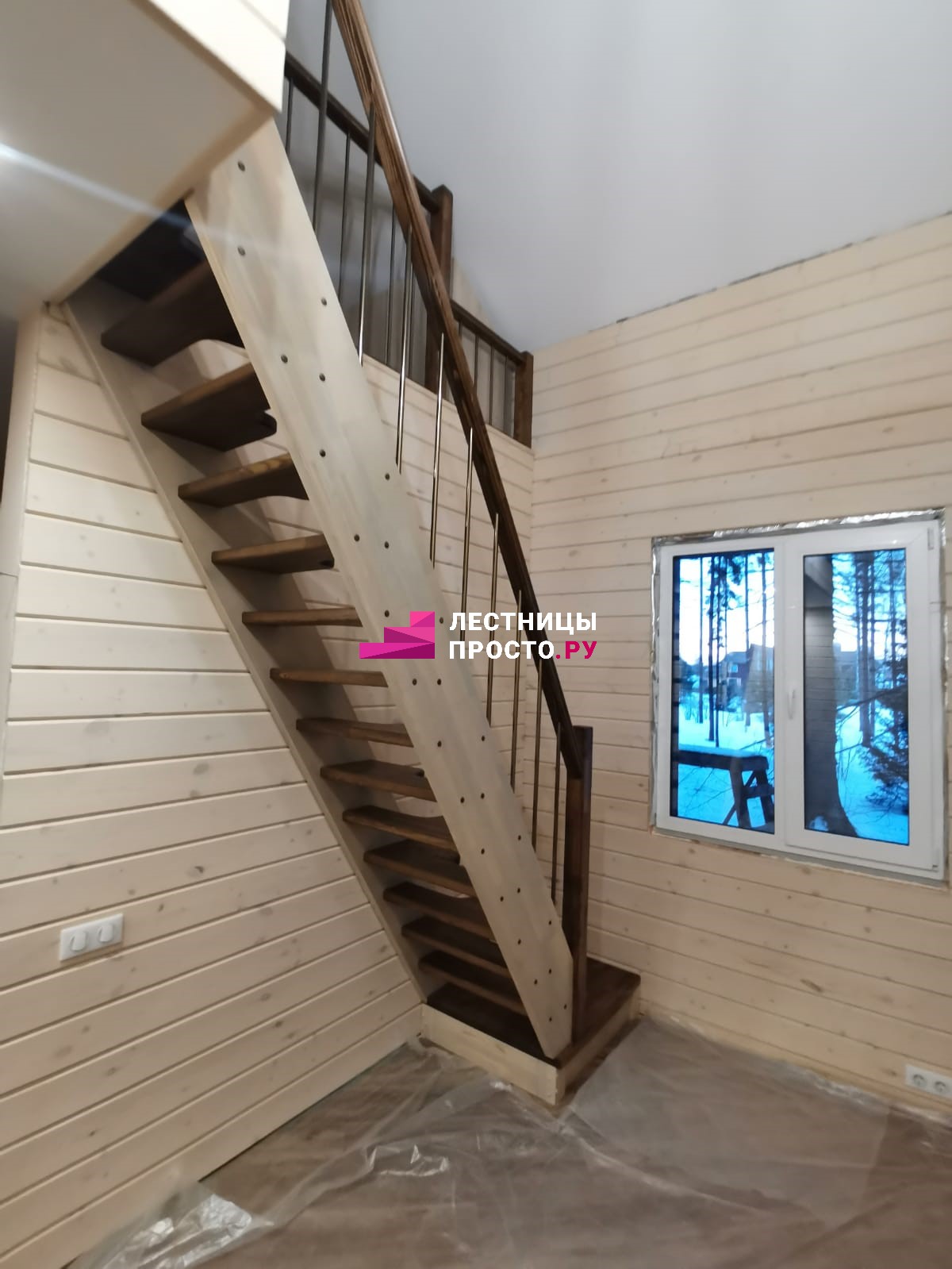 Лестница из сосны прямая