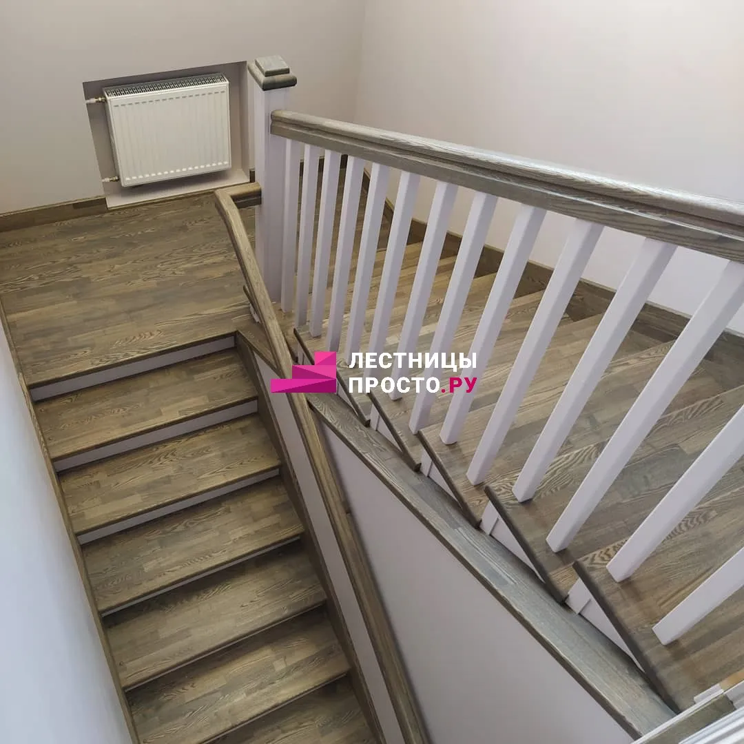 Лестница из ясеня с фигурными балясинами в частном доме по индивидуальному проекту LP-1-46