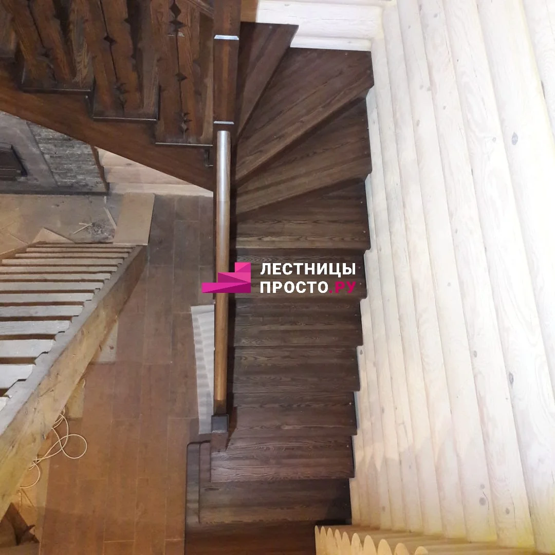 Лестница окрашена средством Varathane, цвет был подобран максимально близко к образцу Покупателя.