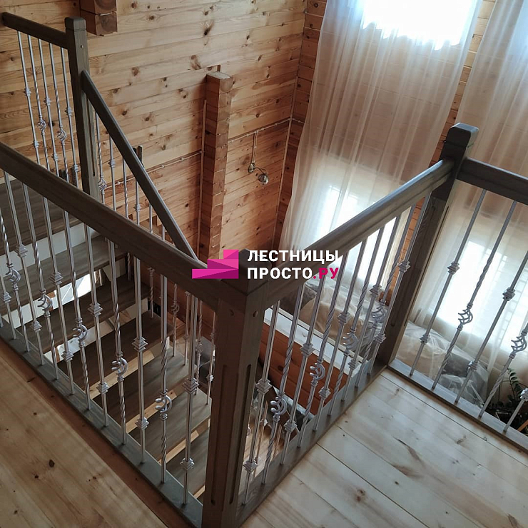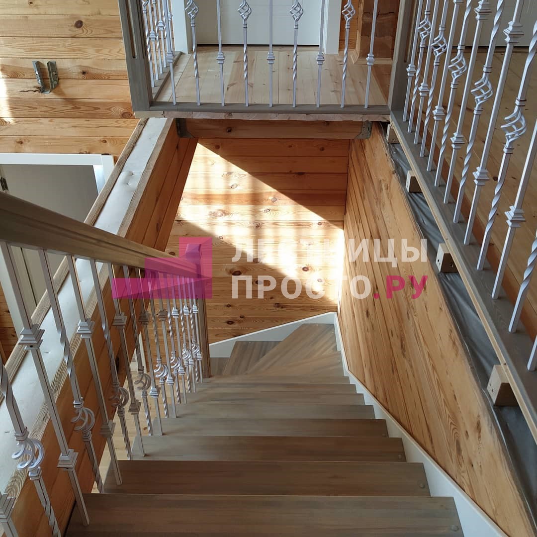 Лестница из ясеня с кованым ограждением по индивидуальному проекту LP-055