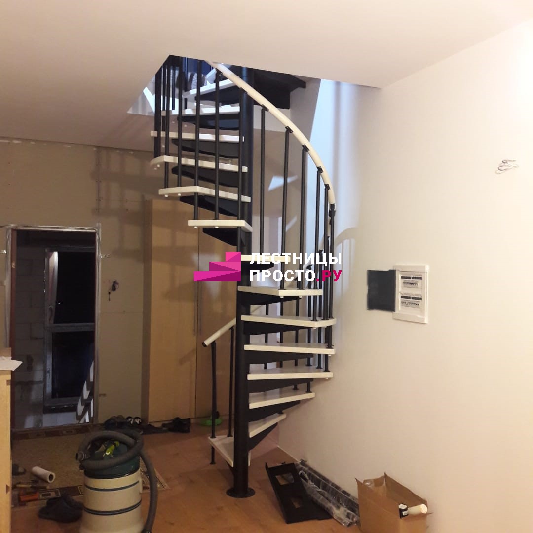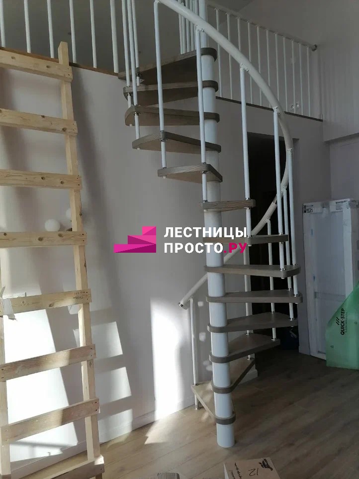 Винтовая лестница PROSTO SPIRAL WHITE в двухуровневой квартире