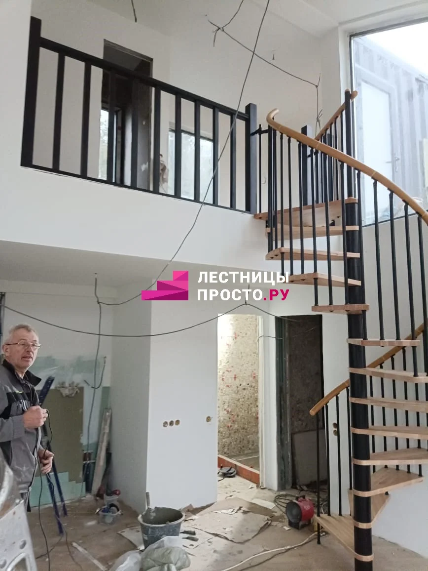 Винтовая лестница с металлическим ограждением для частного дома